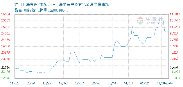 锌 • 上海物贸中心有色金属交易市场报价图