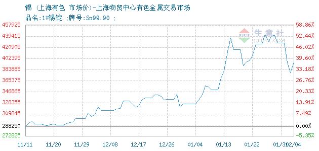 1#锡 • 上海物贸中心有色金属交易市场报价图