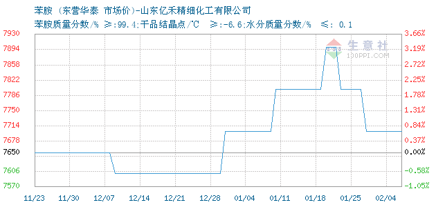 | 苯胺质量分数/% ≥:99.4;干品结晶点/℃ ≥:-6.6;水分质量分数/% ≤: 0.1 附加说明: |