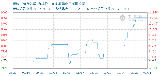 | 苯胺质量分数/% ≥:99.4;干品结晶点/℃ ≥:-6.6;水分质量分数/% ≤: 0.1 附加说明: |