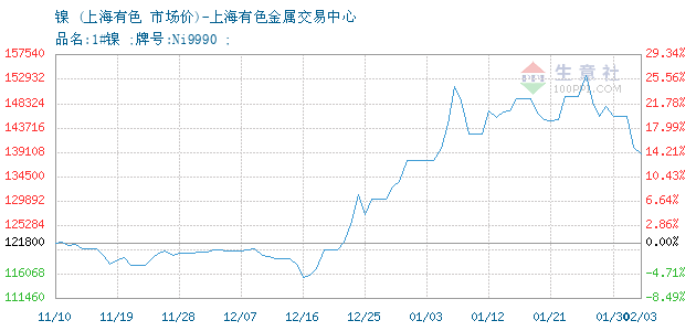 镍 • 上海有色金属交易中心报价图