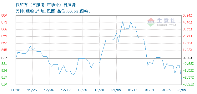 品种:粗粉;产地:巴西;品位:63.5%;湿吨;