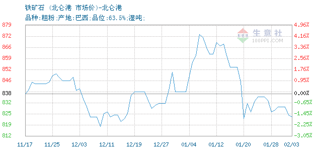 品种:粗粉;产地:巴西;品位:63.5%;湿吨;