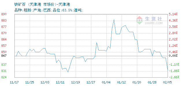 品种:粗粉;产地:巴西;品位:63.5%;湿吨;