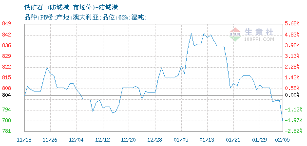 | 属性规格 | 品种:PB粉;产地:澳大利亚;品位:62%;湿吨; | ||