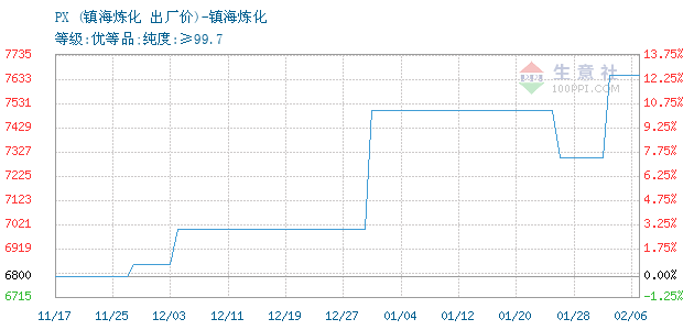 PX • 镇海炼化报价图