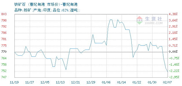 品种:粉矿;产地:印度;品位:62%;湿吨;