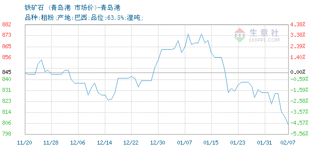 铁矿石(巴) • 青岛港报价图