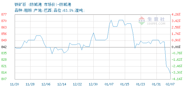 铁矿石(巴) • 防城港报价图