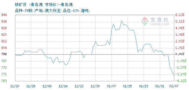 | 属性规格 | 品种:PB粉;产地:澳大利亚;品位:62%;湿吨; | ||