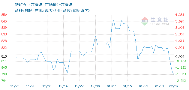 | 属性规格 | 品种:PB粉;产地:澳大利亚;品位:62%;湿吨; | ||