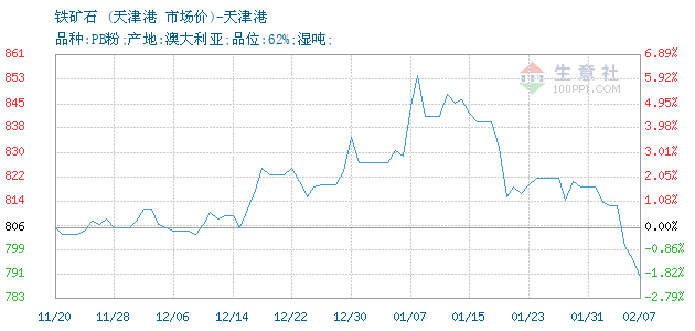 | 属性规格 | 品种:PB粉;产地:澳大利亚;品位:62%;湿吨; | ||