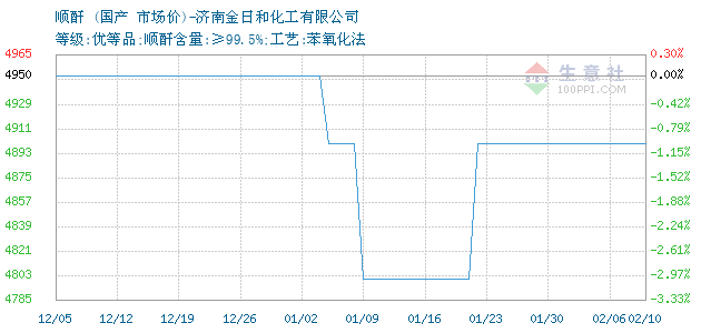 | 等级:优等品;顺酐含量:≥99.5%;工艺:苯氧化法 附加说明: |