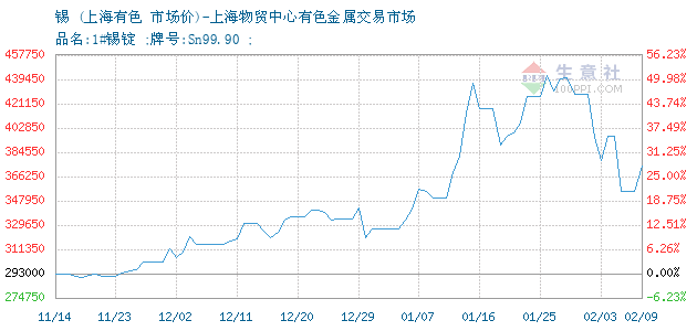1#锡 • 上海物贸中心有色金属交易市场报价图