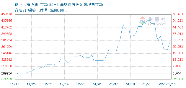 1#锡 • 上海华通有色金属现货市场报价图