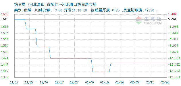 炼焦煤(焦煤) • 河北唐山炼焦煤市场报价图