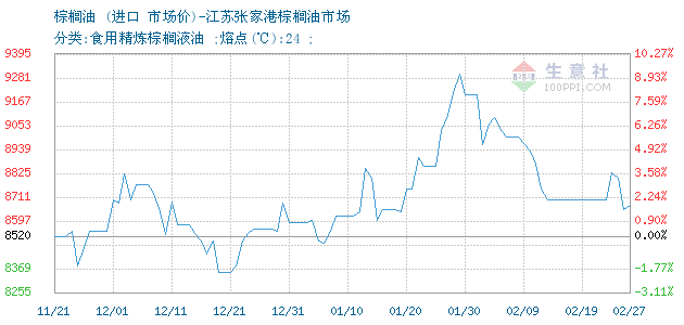 棕榈油 • 江苏张家港棕榈油市场报价图