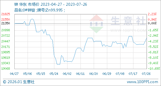 7月26日,生意社锌基准价为20442.00元/吨,与本月初(20206.00元/吨)相比,上涨了1.17%。