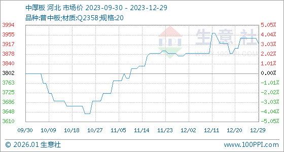 12月29日,生意社中厚板基准价为3942.00元/吨,与本月初(3872.00元/吨)相比,上涨了1.81%。