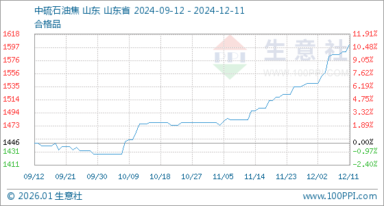 12月11日,生意社石油焦基准价为1590.75元/吨,与本月初(1540.25元/吨)相比,上涨了3.28%。