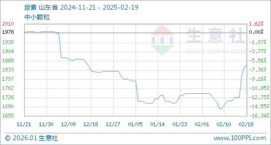 2月19日,生意社尿素基准价为1843.75元/吨,与本月初(1741.67元/吨)相比,上涨了5.86%。
