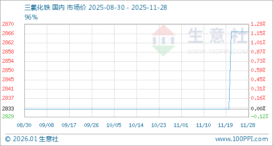 11月28日,生意社三氯化铁基准价为2866.67元/吨,与本月初(2833.33元/吨)相比,上涨了1.18%。