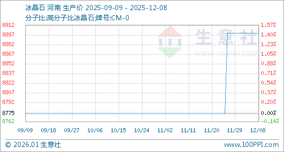 12月8日,生意社冰晶石基准价为8900.00元/吨,与本月初持平。