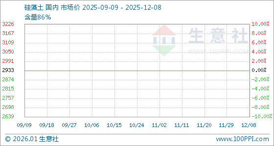 12月8日,生意社硅藻土基准价为2933.33元/吨,与本月初持平。