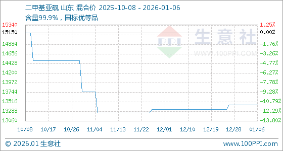 1月6日,生意社二甲基亚砜基准价为13433.33元/吨,与本月初持平。