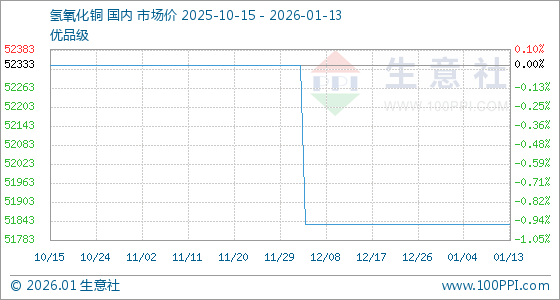 1月13日,生意社氢氧化铜基准价为51833.33元/吨,与本月初持平。
