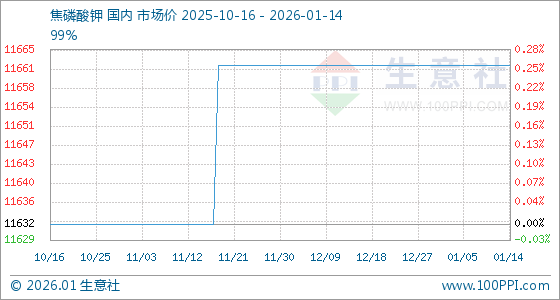 1月14日,生意社焦磷酸钾基准价为11662.50元/吨,与本月初持平。
