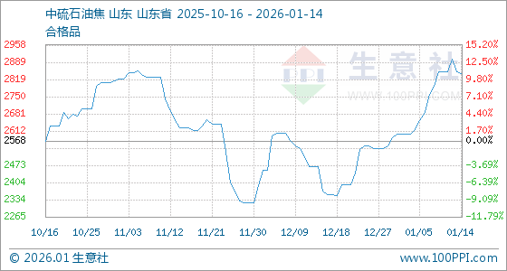 1月14日,生意社石油焦基准价为2850.00元/吨,与本月初(2598.25元/吨)相比,上涨了9.69%。