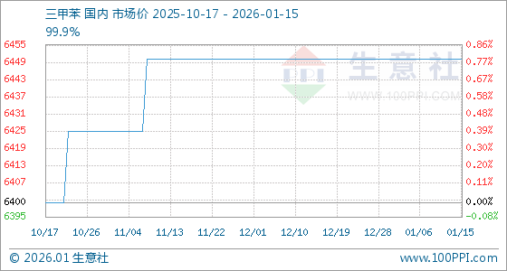 1月15日,生意社三甲苯基准价为6450.00元/吨,与本月初持平。