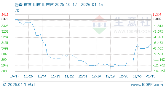 1月15日,生意社沥青基准价为3133.33元/吨,与本月初(2973.33元/吨)相比,上涨了5.38%。