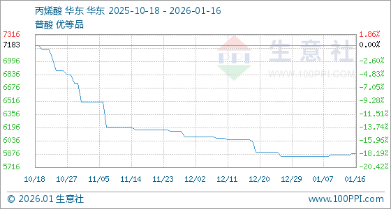 1月16日,生意社丙烯酸基准价为5883.33元/吨,与本月初(5850.00元/吨)相比,上涨了0.57%。