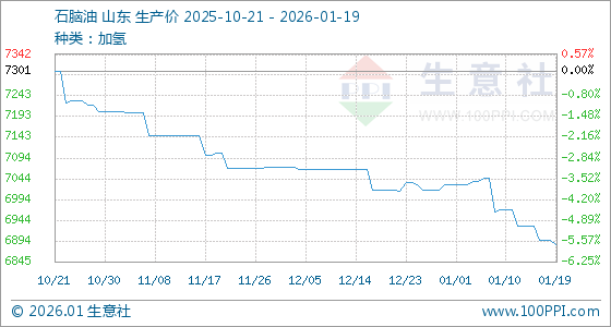 1月19日,生意社石脑油基准价为6896.67元/吨,与本月初(7029.00元/吨)相比,下降了1.88%。