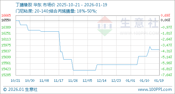 1月19日,生意社丁腈橡胶基准价为15875.00元/吨,与本月初(15525.00元/吨)相比,上涨了2.25%。