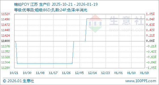 1月19日,生意社锦纶POY基准价为11500.00元/吨,与本月初持平。