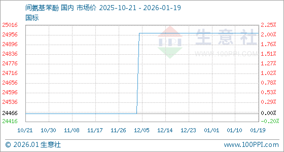 1月19日,生意社间氨基苯酚基准价为24966.67元/吨,与本月初持平。