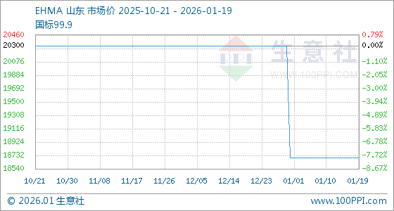 1月19日,生意社EHMA基准价为18700.00元/吨,与本月初持平。