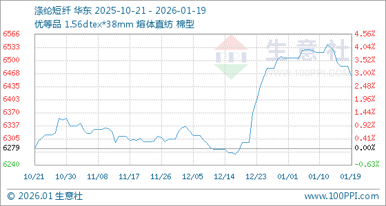 1月19日,生意社涤纶短纤基准价为6486.70元/吨,与本月初(6507.33元/吨)相比,下降了0.32%。