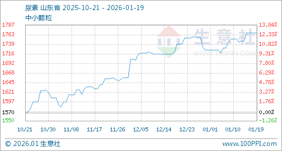 1月19日,生意社尿素基准价为1767.50元/吨,与本月初(1725.00元/吨)相比,上涨了2.46%。