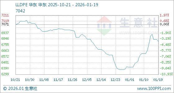 1月19日,生意社LLDPE基准价为6840.00元/吨,与本月初(6410.00元/吨)相比,上涨了6.71%。