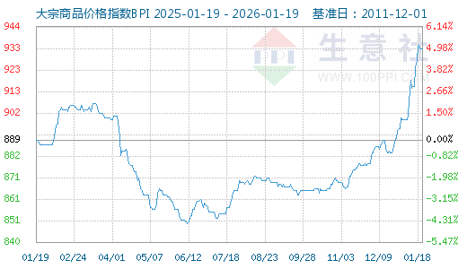 1月18日大宗商品价格指数BPI为933点, 与昨日持平 , 较周期内最高点1343点(2021-10-19)下降了30.53%,较2016年02月03日最低点660点上涨了41.36%。
