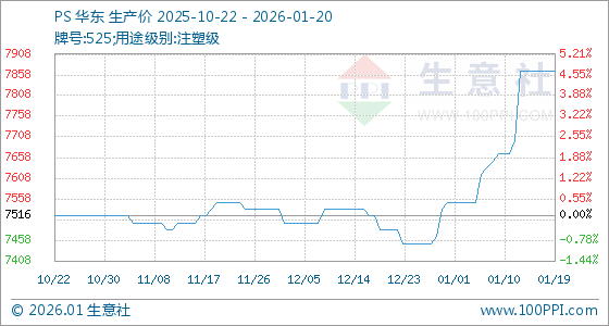 1月20日,生意社PS基准价为7866.67元/吨,与本月初(7550.00元/吨)相比,上涨了4.19%。