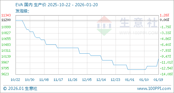1月20日,生意社EVA基准价为10083.33元/吨,与本月初(9766.67元/吨)相比,上涨了3.24%。