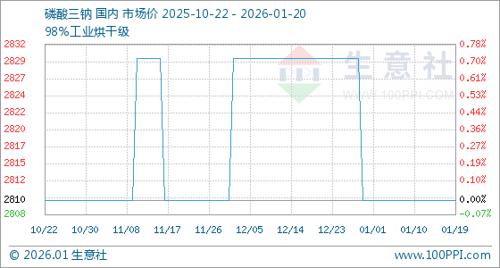 1月20日,生意社磷酸三钠基准价为2810.00元/吨,与本月初持平。