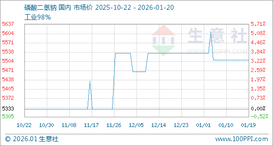 1月20日,生意社磷酸二氢钠基准价为5510.00元/吨,与本月初(5533.33元/吨)相比,下降了0.42%。