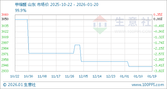 1月20日,生意社甲缩醛基准价为2944.00元/吨,与本月初(2955.00元/吨)相比,下降了0.37%。