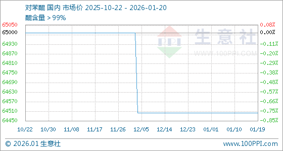 1月20日,生意社对苯醌基准价为64500.00元/吨,与本月初持平。